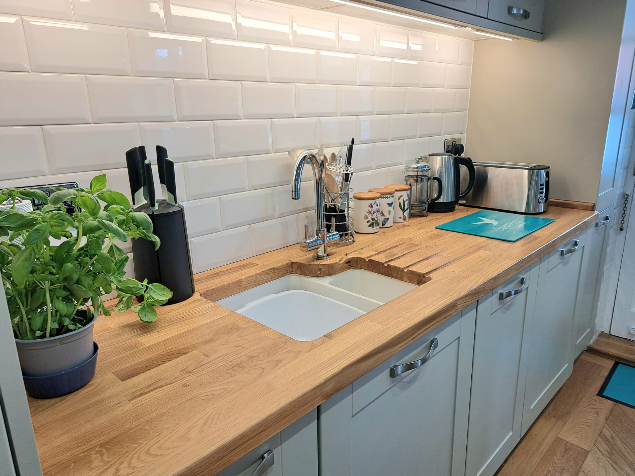 The fully equipped kitchen is equipped with everything you need to make meals. There is an oven with grill, hob, slow cooker, microwave and cafetiere. We provide kitchen roll ,oven gloves, tea towels, dish cloth, pan scrub, tin foil, washing up liquid and dishwasher tablets.