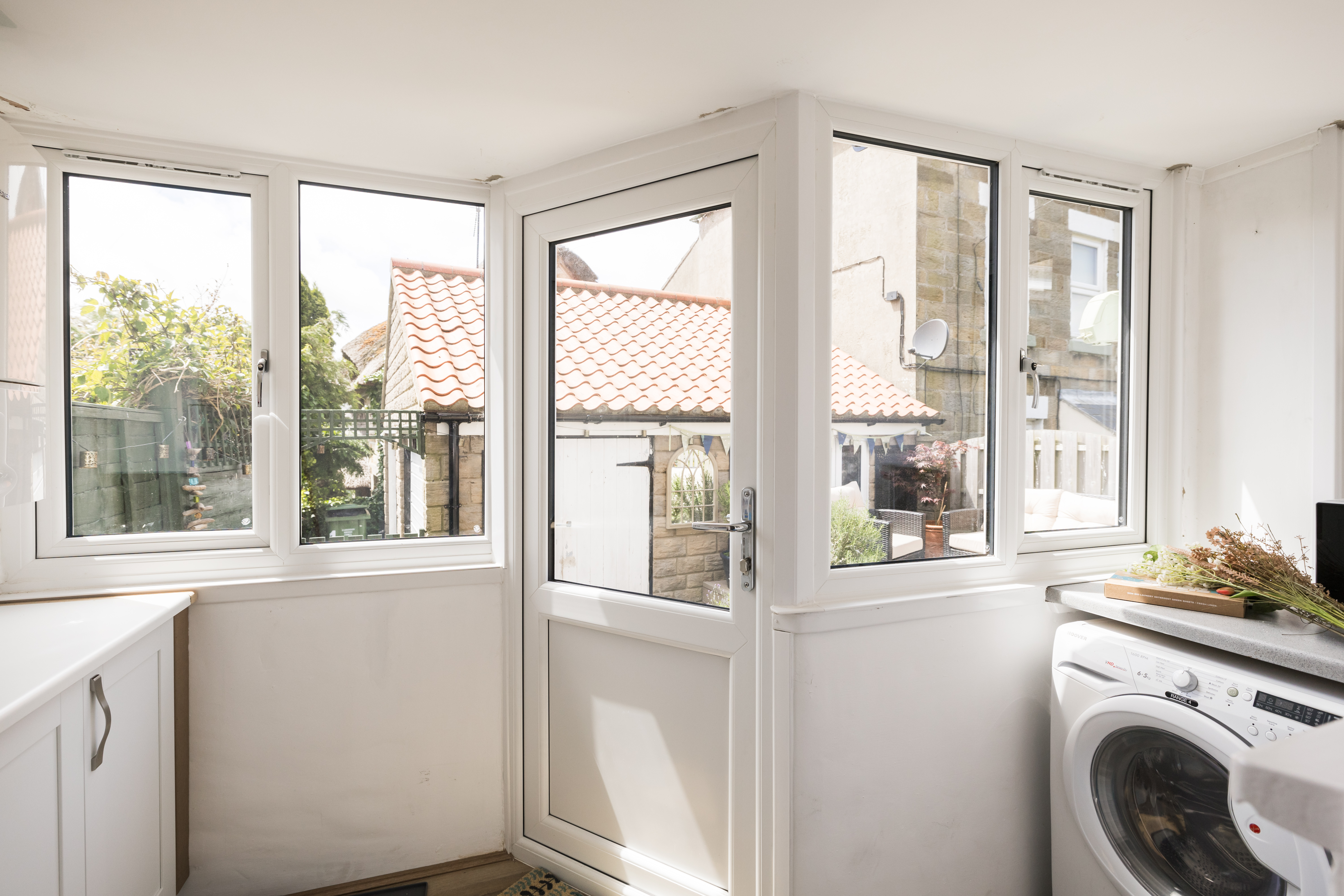 Sealark has a south facing enclosed courtyard style garden with a raised terrace area, ideal for al fresco lunches after a morning exploring or a glass of wine in the sunshine. There is comfortable seating (sofa and chairs) with a glass topped coffee table.